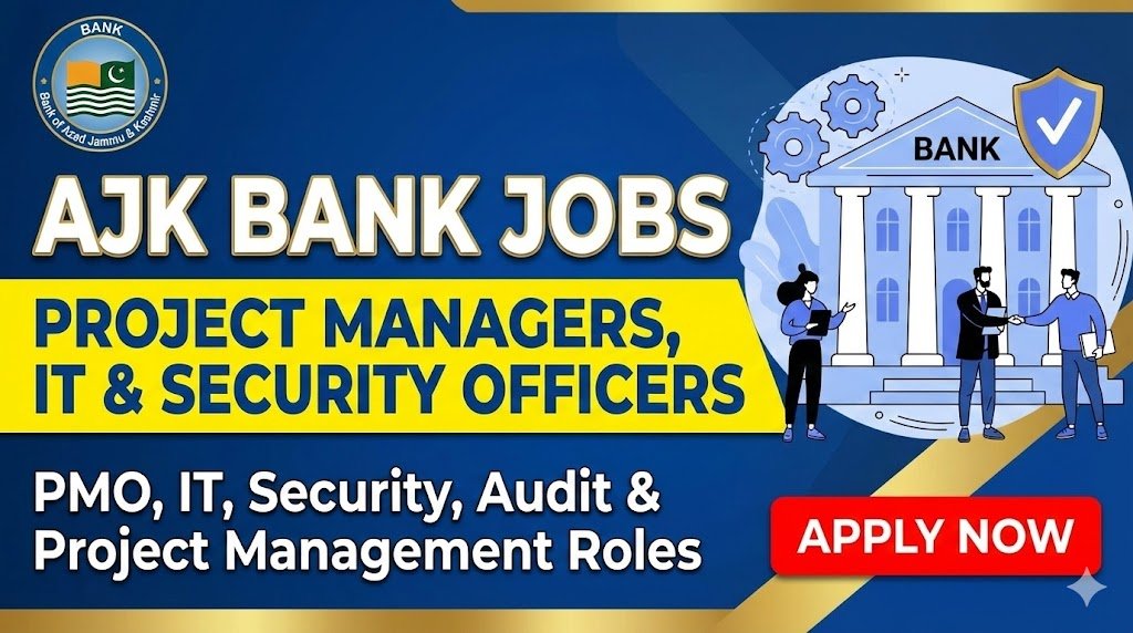 AJK Bank is hiring professionals for leadership, IT, security, audit, analytics, and project management roles. These positions require strong technical expertise, banking or enterprise-level experience, and the ability to work in structured, compliance-driven environments.