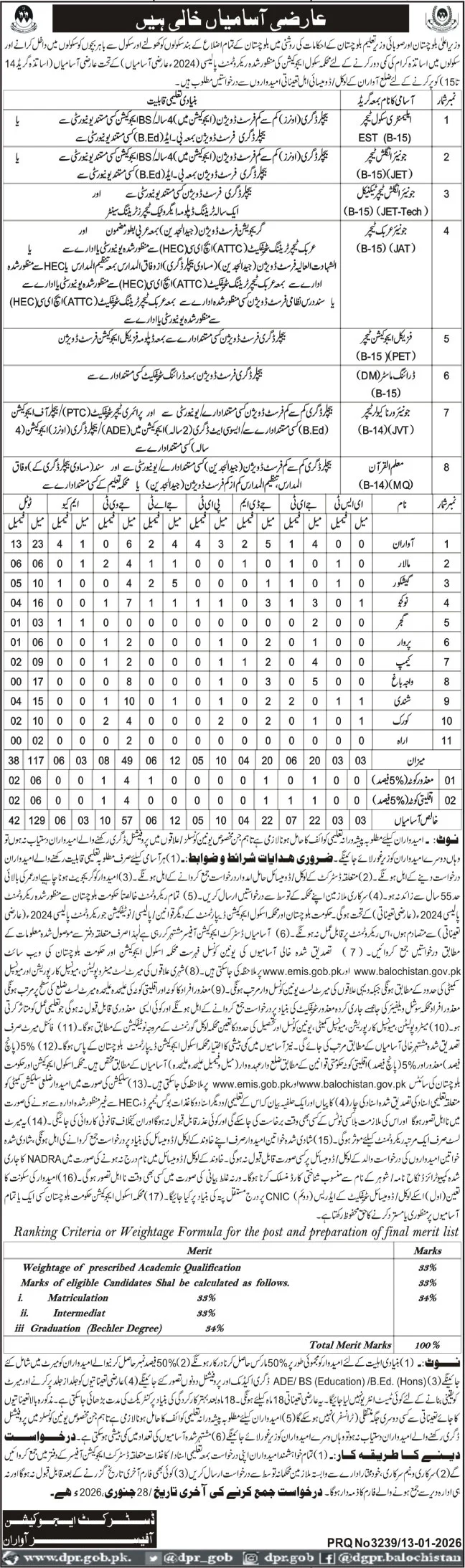 | Hiring Organization | District Education Officer (DEO) Awaran |