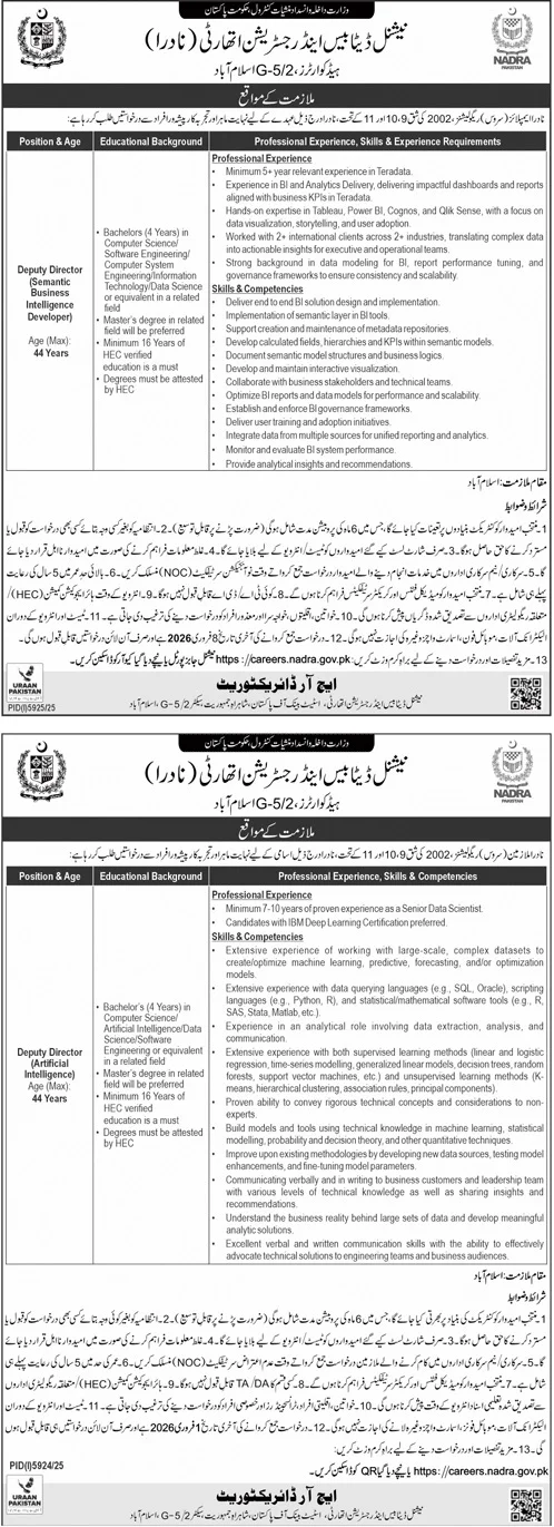 NADRA Deputy Director Jobs 2026 | AI & Business Intelligence