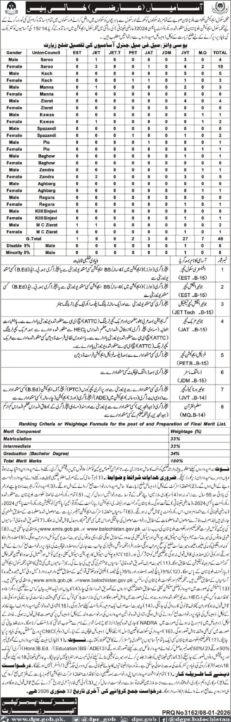 These positions are purely merit-based and will be filled according to the Government of Balochistan recruitment rules. Selection will be done through document verification and merit list preparation.