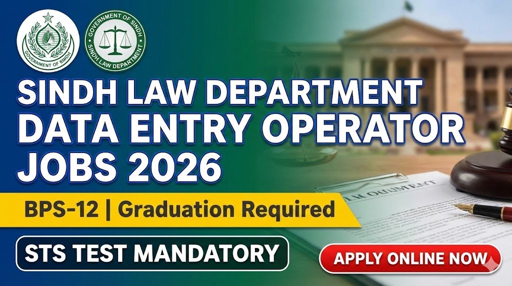 The Government of Sindh, Law, Parliamentary Affairs & Criminal Prosecution Department has announced new Data Entry Operator (BPS-12) vacancies for eligible candidates having Sindh domicile. These positions are offered under government recruitment rules and provide a stable career opportunity for graduates with computer and typing skills.